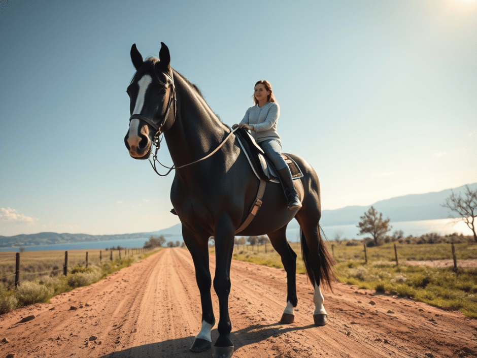 Beau, a breathtaking combination of Arabian and Quarter horse, glistened in the morning sun. He was all black, including his long mane and tail, except for the white blaze on his nose and his four white socks. He pawed the ground, and I laughed. He was ready to hit the country roads and backtrails, too. It was a short ride to Brush Hollow, and we had the whole day to ourselves.
