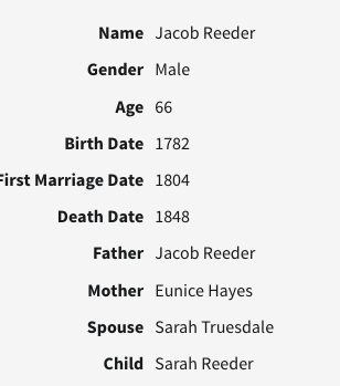 Jacob Reeder (1782–1848) Birth 25 JUL 1782 • Luzerne, Luzerne, Pennsylvania