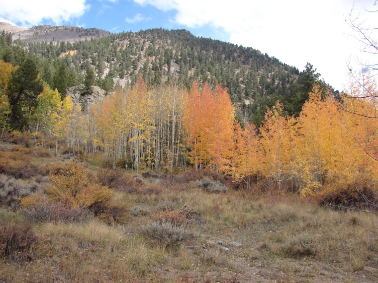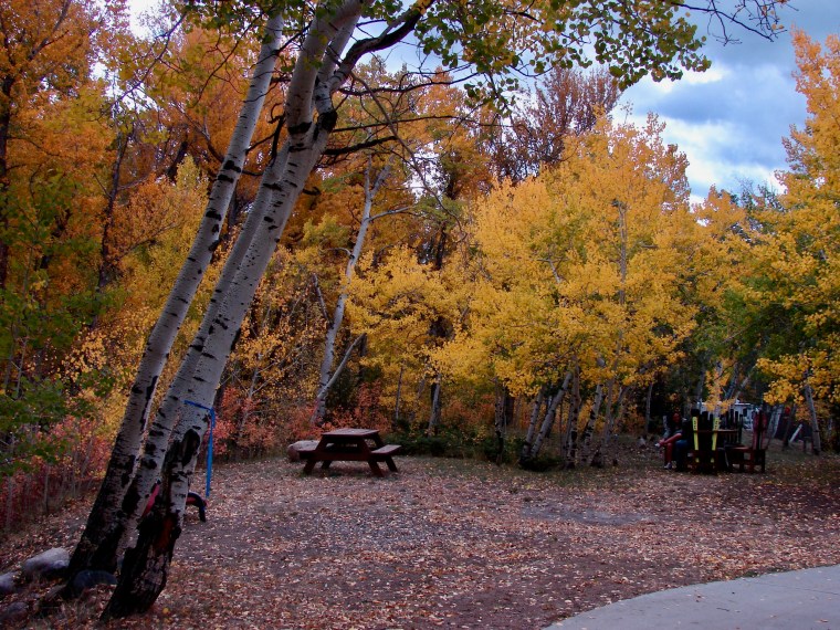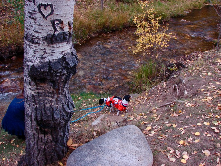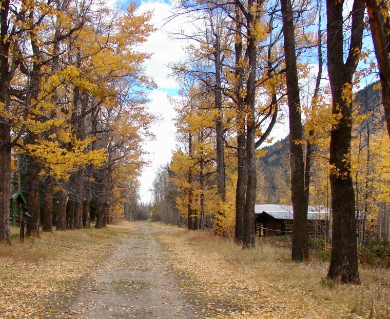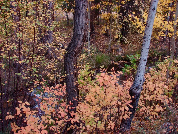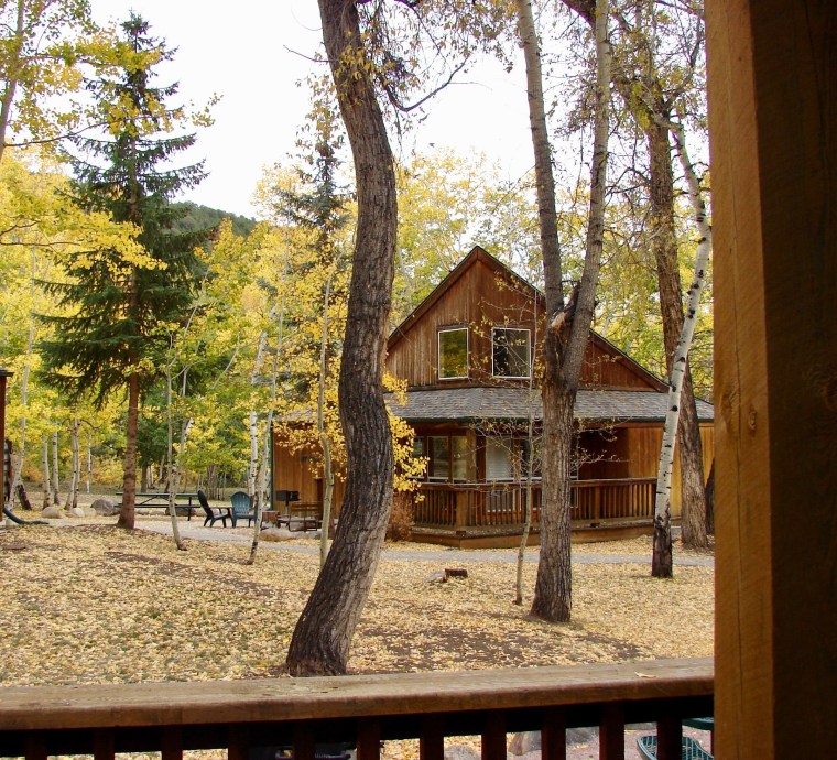 Once we arrived at the cabins we unpacked the car and took a walk around the area. A stream ran through the back of the property and the area was covered with aspens, all in various shades of yellow, gold and orange. Pine trees also graced the area. Later that evening, we soaked in the hot tub.