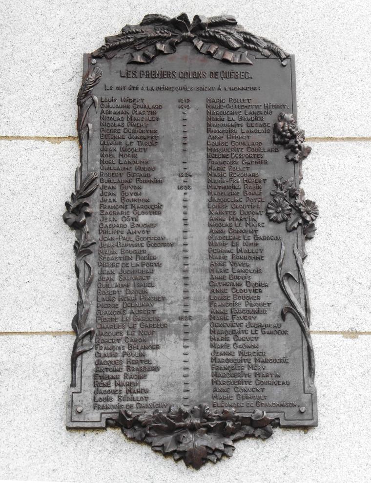 - Jeangagnon. “Plaque Des Premiers Colons De Quebec.” Plaque Des Premiers Colons De Quebec, Wikimedia Commons, Quebec, 11 Sept. 2018, By Jeangagnon – Own work, CC BY-SA 3.0, https://commons.wikimedia.org/w/index.php?curid=34596874.
