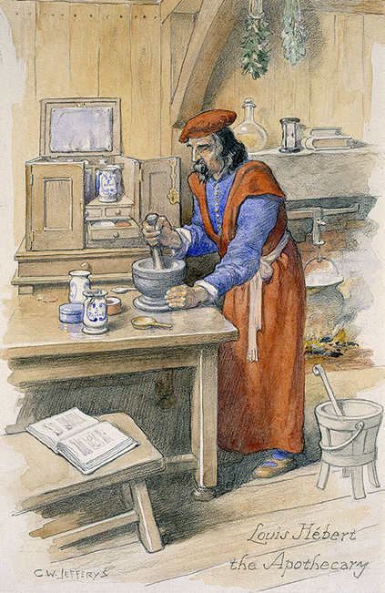 - Jeffreys, Charels William. “ Louis Hébert // the Apothecary.” Louis Hébert the Apothecary, Wikimedia Commons, 1 Dec. 2018, Port Royal, Acadia, Canada, http://www.cwjefferys.ca/uploads/thumbnails/08LouisHebert.jpg.e17f965a.jpg, Public Domain, https://commons.wikimedia.org/w/index.php?curid=52340889.