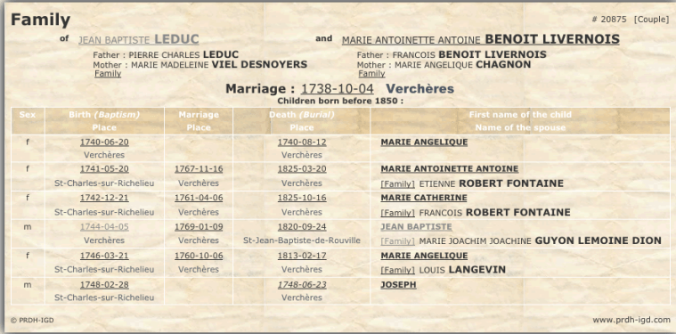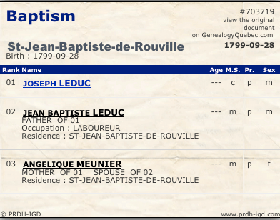 Birth SEPTEMBER 2, 1799 • St Jean Baptiste, Rouville Quebec Canada