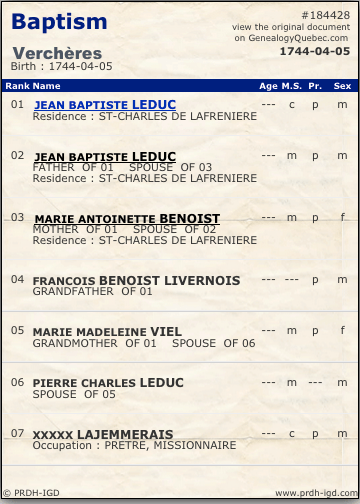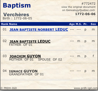 Birth 6 JUN 1765 • Verchères, Quebec, Canada