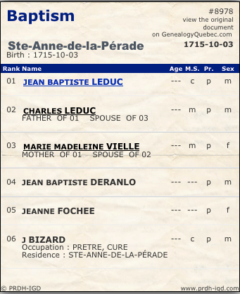 Birth 3 OCT 1715 • La Pérade, Quebec, Canada