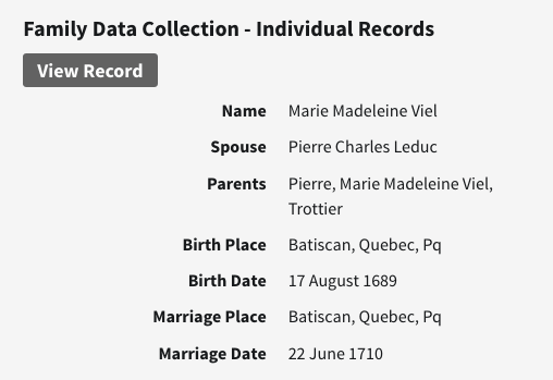 Birth 17 AUG 1689 • Batiscan, Quebec, Canada