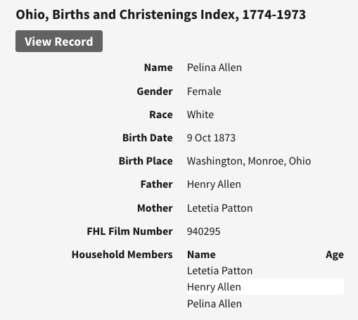 Birth 9 Oct 1873 • Washington, Monroe, Ohio