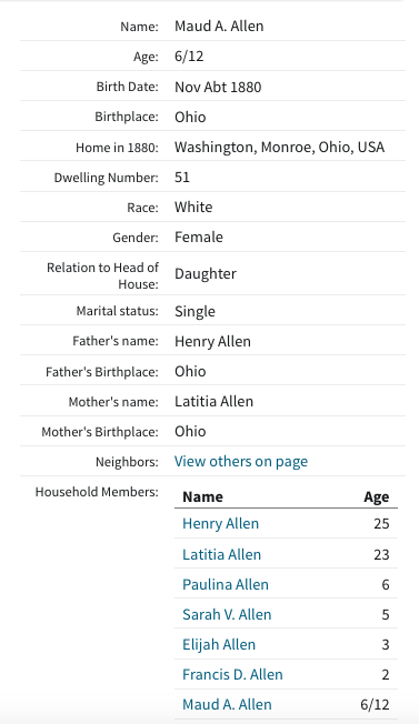 - “1880 United States Federal Census.” Provo, UT, USA: Ancestry.com Operations Inc, 2010. 1880 U.S. Census Index Provided by The Church of Jesus Christ of Latter-Day Saints, search.ancestry.com/search/db.aspx?dbid=6742.
