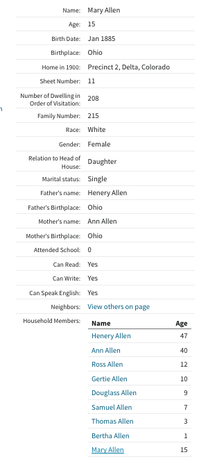 Birth 1889 • Hotchkiss, Delta, Colorado