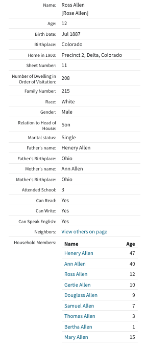 Birth 1887 • Hotchkiss, Delta, Colorado