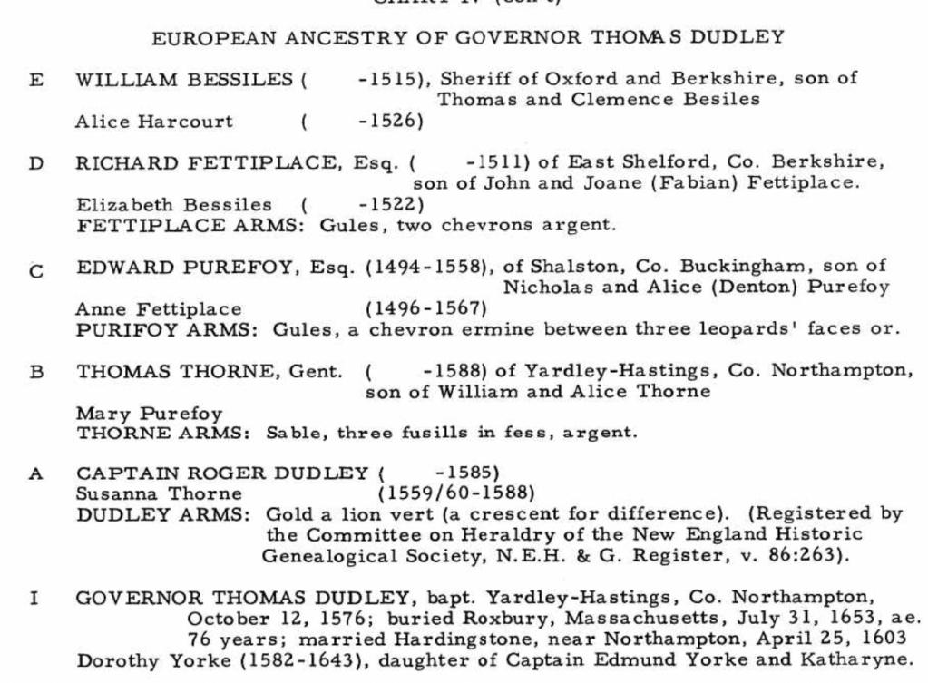 - Dudley, Dean, History of the Dudley Family: With Genealogical Tables, Pedigrees, &c., Number 1, Boston: David Clapp and Son, Printers (1886), 276.