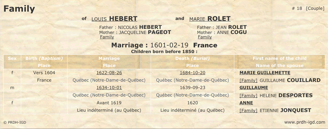 - “PRDH – Programme De Recherche En Démographie Historique. Généalogie Canadienne-Française Du Québec.” The Programme De Recherche En Démographie Historique (PRDH) List of the «Filles Du Roi» (the King’s Daughters) – PRDH-IGD, Drouin Institute, http://www.prdh-igd.com/.