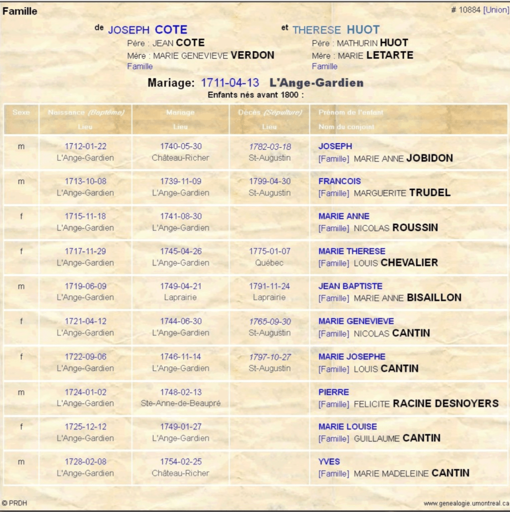 BIRTH 8 OCT 1713 • lAnge, Quebec, Canada