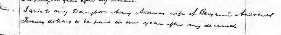 I give to my daughter Amy Andrews wife of Benjamin Andrews Twenty dollars to be paid after my deceased.