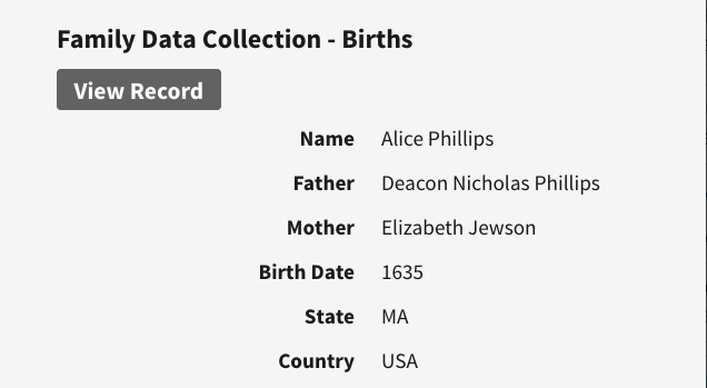 Birth 15 OCT 1694 • Westfield, Hampden, Massachusetts