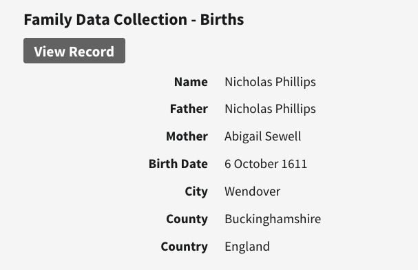 Birth 6 OCT 1611 • Wendover, Buckinghamshire, England