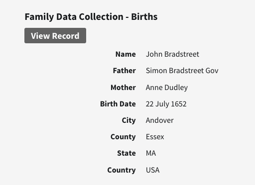 Birth 22 JUL 1652 • Andover, Essex, Massachusetts