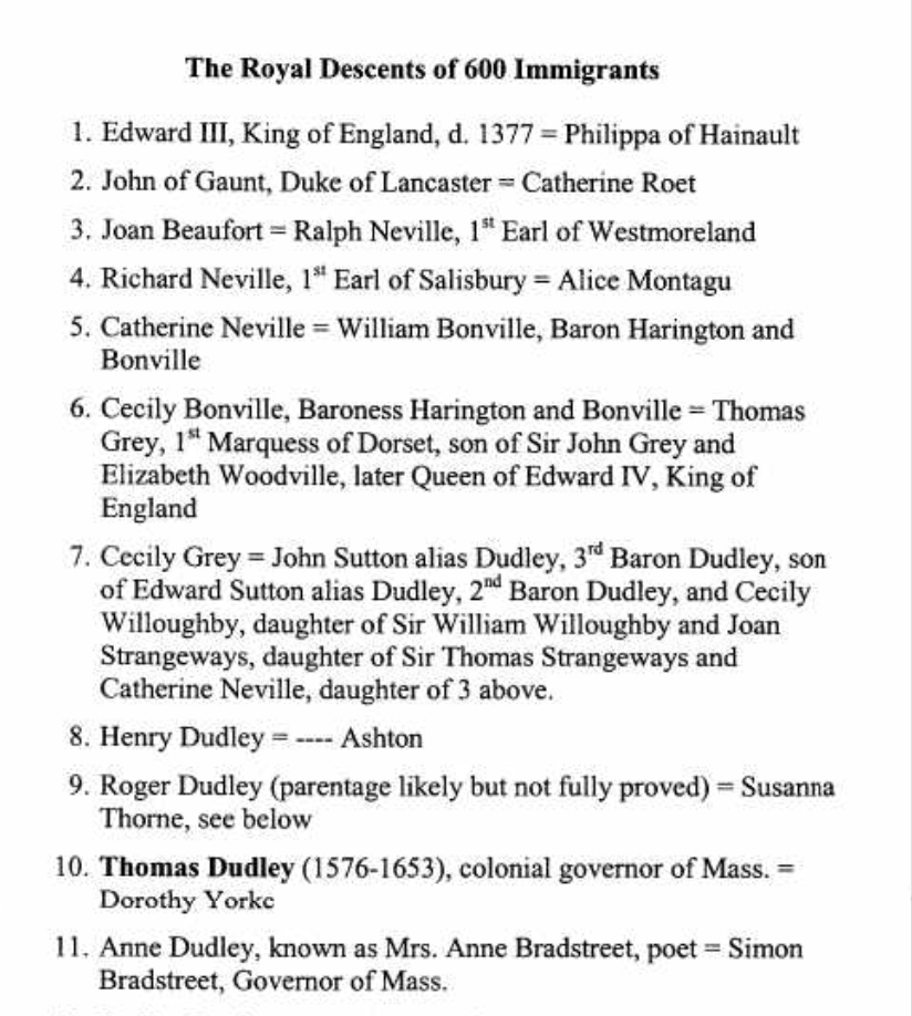 The Royal Descents of 600 Immigrants