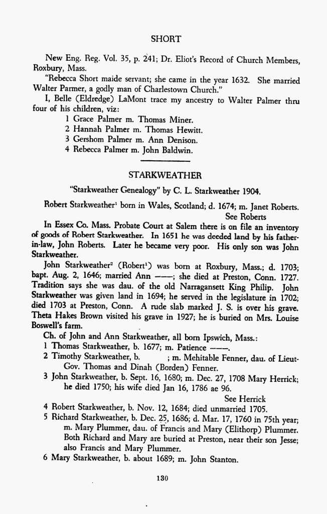 Starkweather, Carlton Lee. A Brief Genealogical History of Robert Starkweather of Roxbury and Ipswich,