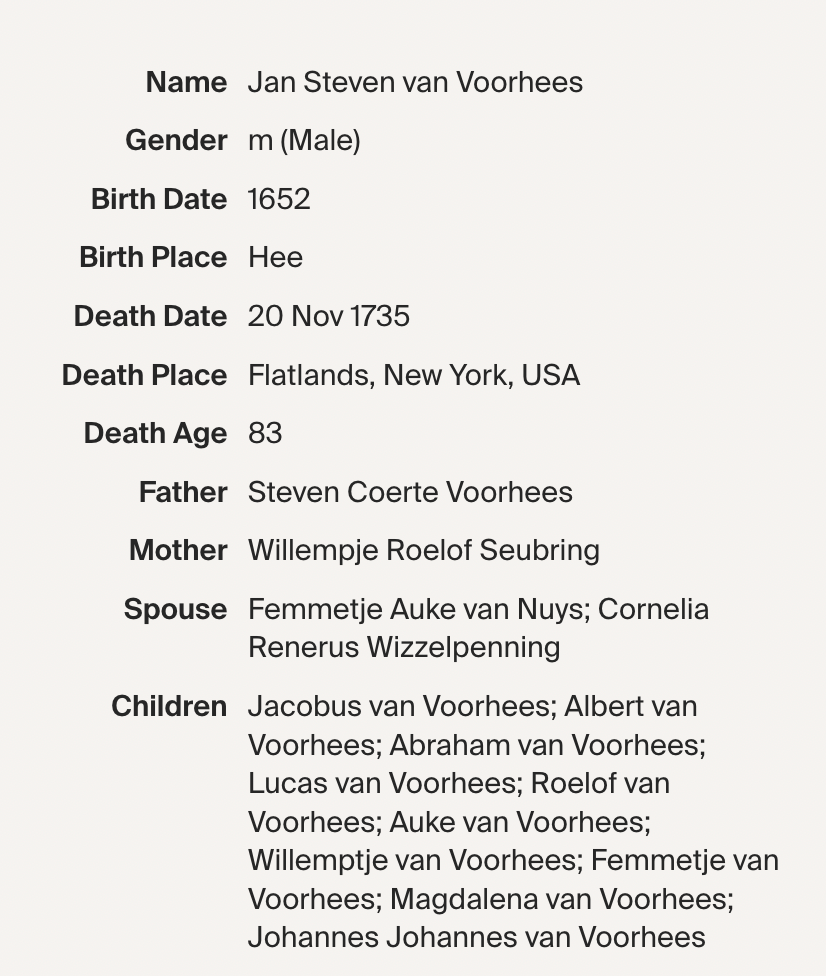 DEATH 20 Nov 1735 • Flatlands, Long Island, New York, USA